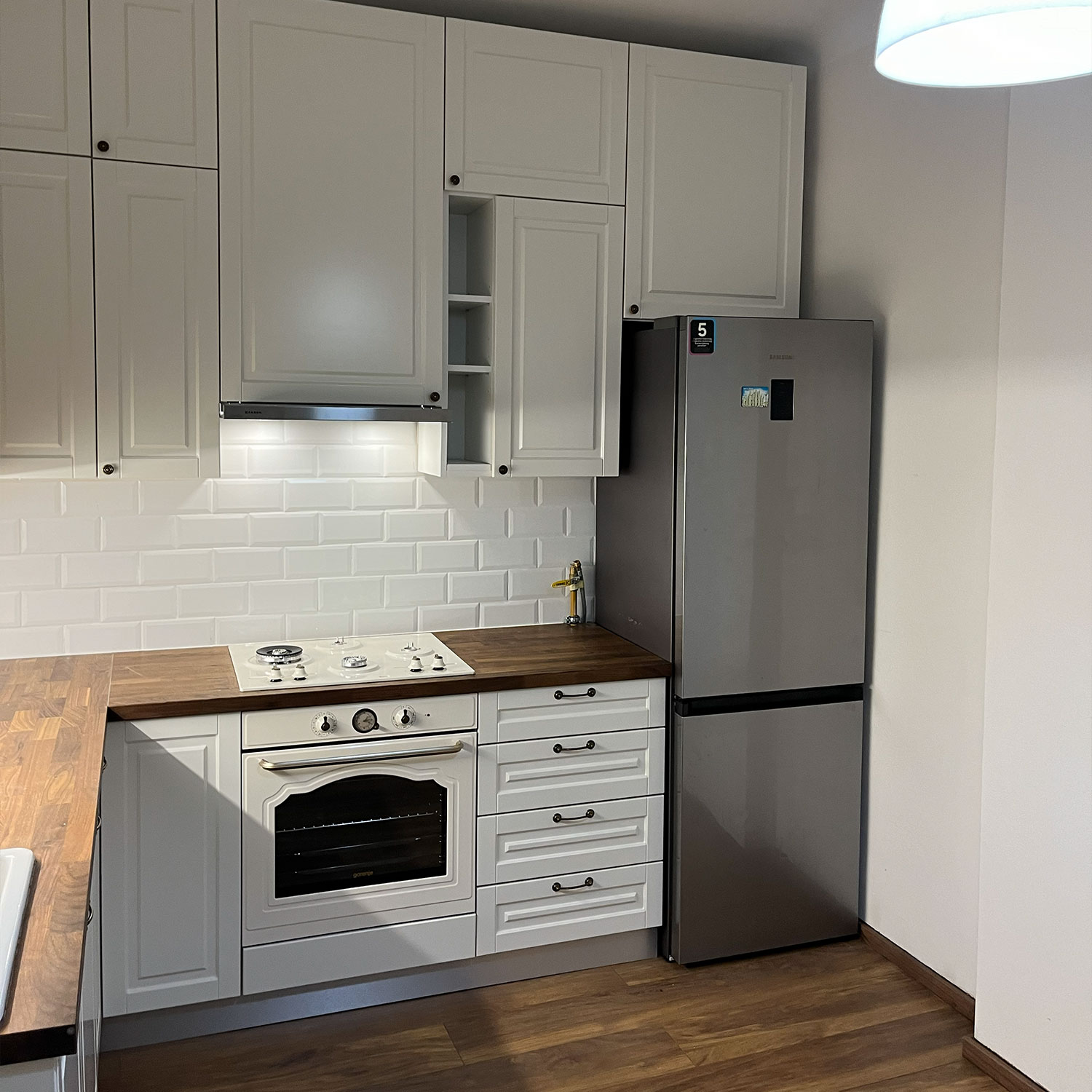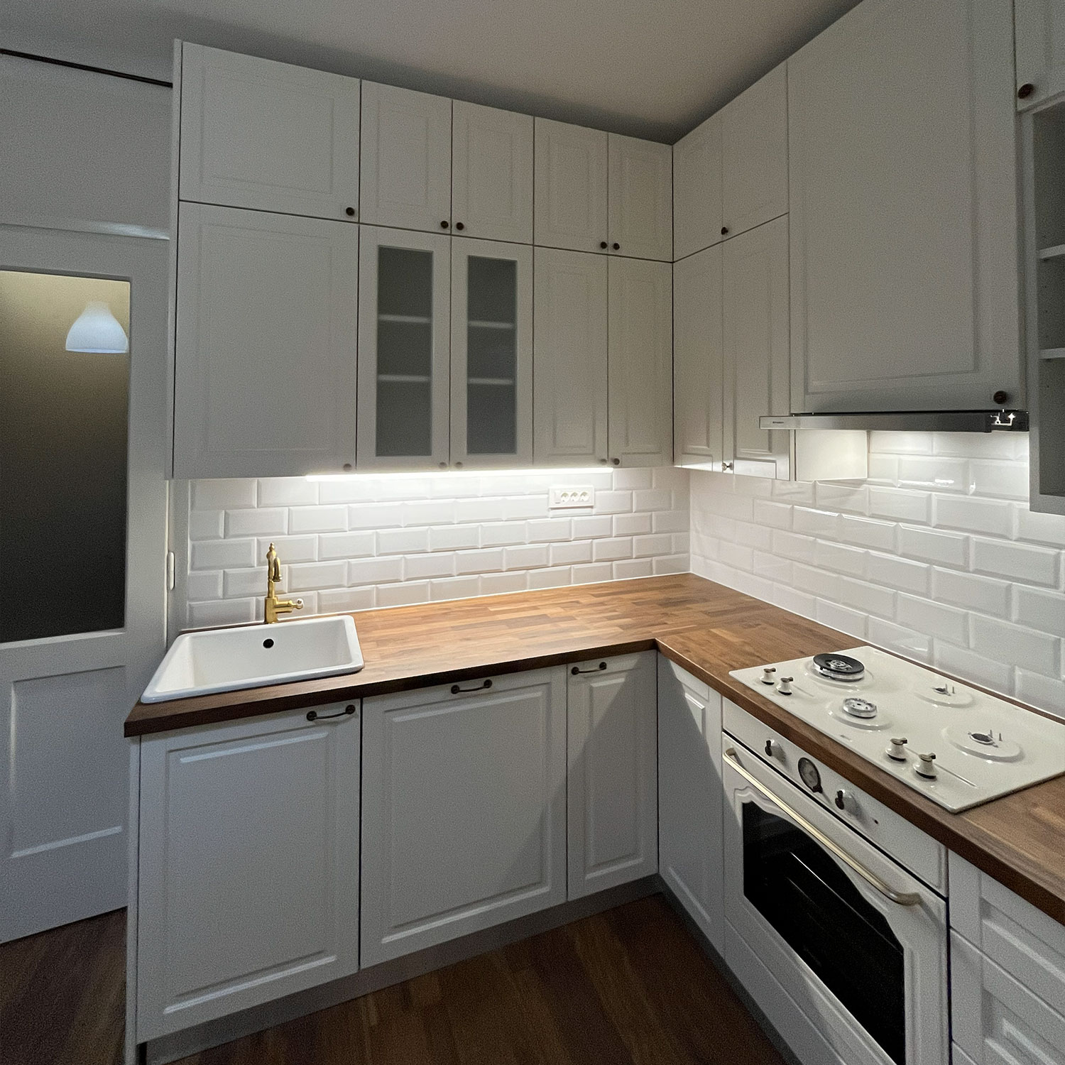 U sklopu projekta izvedena je potpuna adaptacija kuhinjskog prostora, s ciljem stvaranja modernog, funkcionalnog i ugodnog ambijenta. Radovi su obuhvatili ugradnju novog laminata, zamjenu vrata, izvedbu nove elektroinstalacije, postavljanje keramičkih pločica iznad donjih kuhinjskih elemenata te kompletne soboslikarske radove.